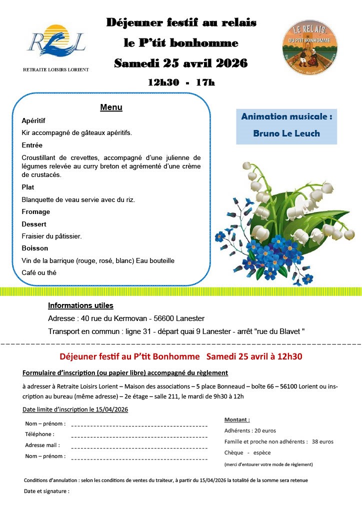REPAS FESTIF le 25 avril 2026